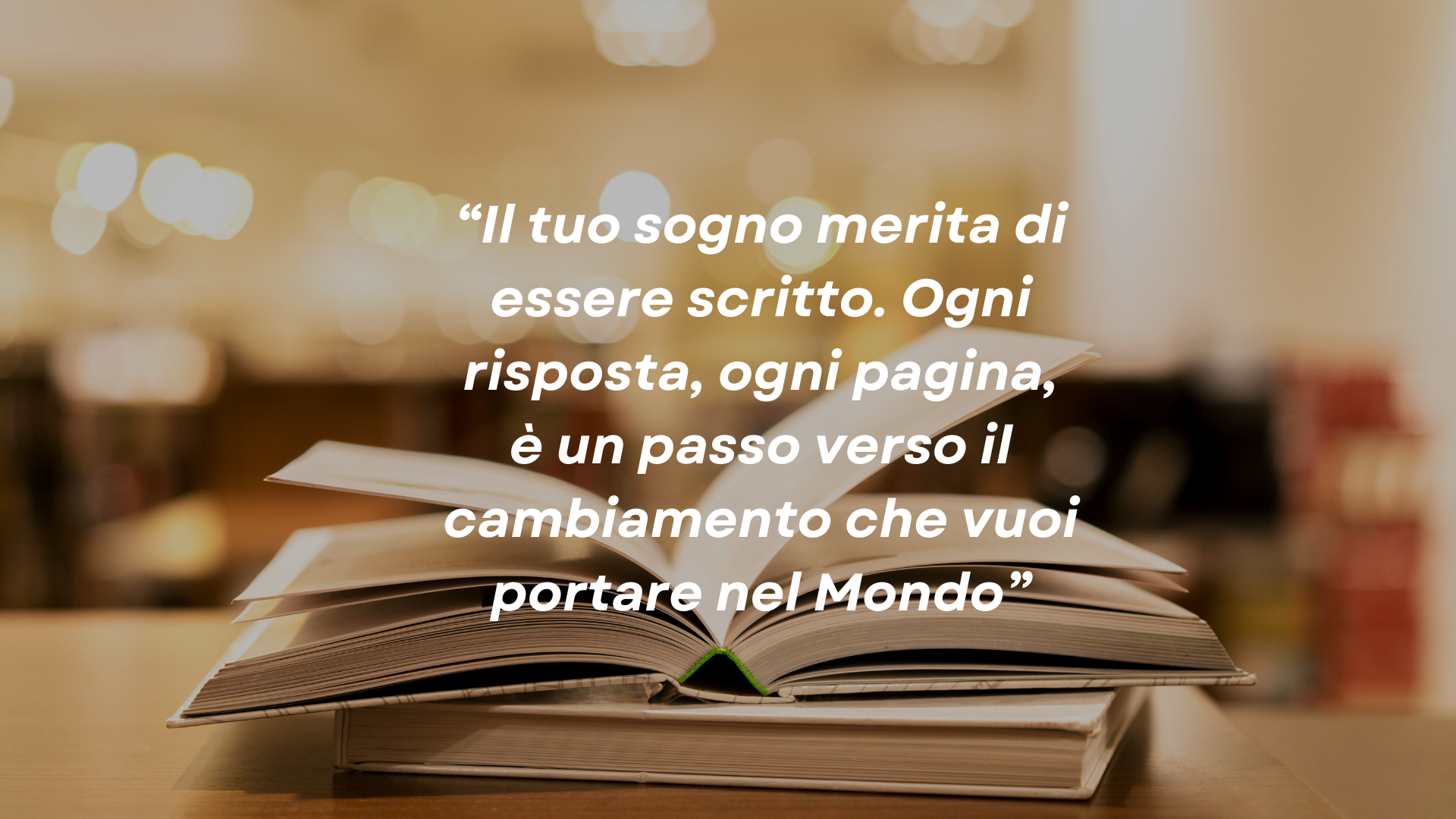 ''Ogni grande libro inizia con un piccolo passo. Questo spazio è la tua guida, il tuo laboratorio e il tuo supporto personale per trasformare la tua idea in un’opera destinata a milioni di lettori.'' Veronica Medda, La Direttrice della Collana